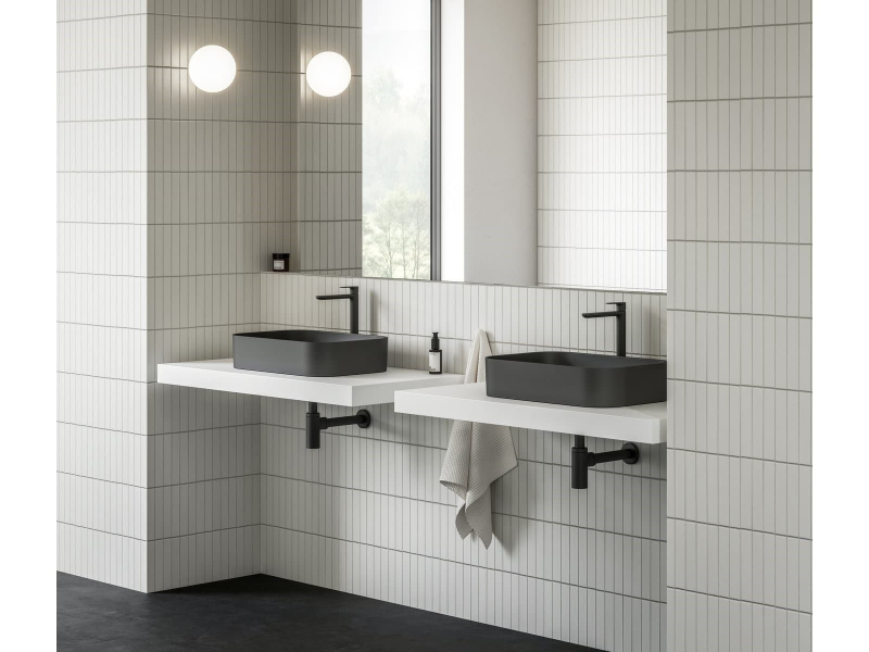 - doplňky k dokoupení: deska pod umyvadlo / skříňka pod umyvadlo na desku, umyvadlová pileta pevná, keramická pileta Flat, umyvadlový sifon nebo nábytkový sifon, umyvadlová baterie