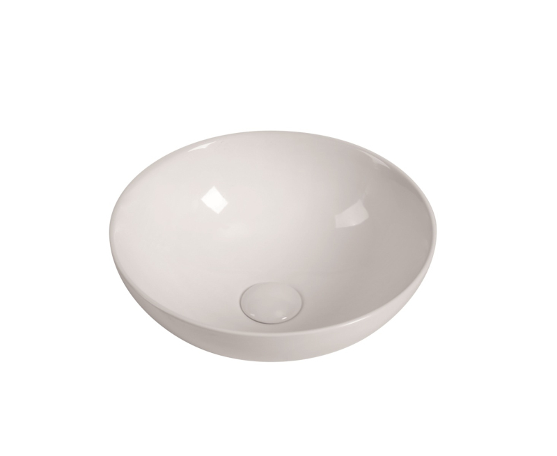 Kulaté keramické umyvadlo na desku v bílé barvě šířkou 28 cm a výškou 10 cm. Balení bez baterie, vtoku a sifonu.