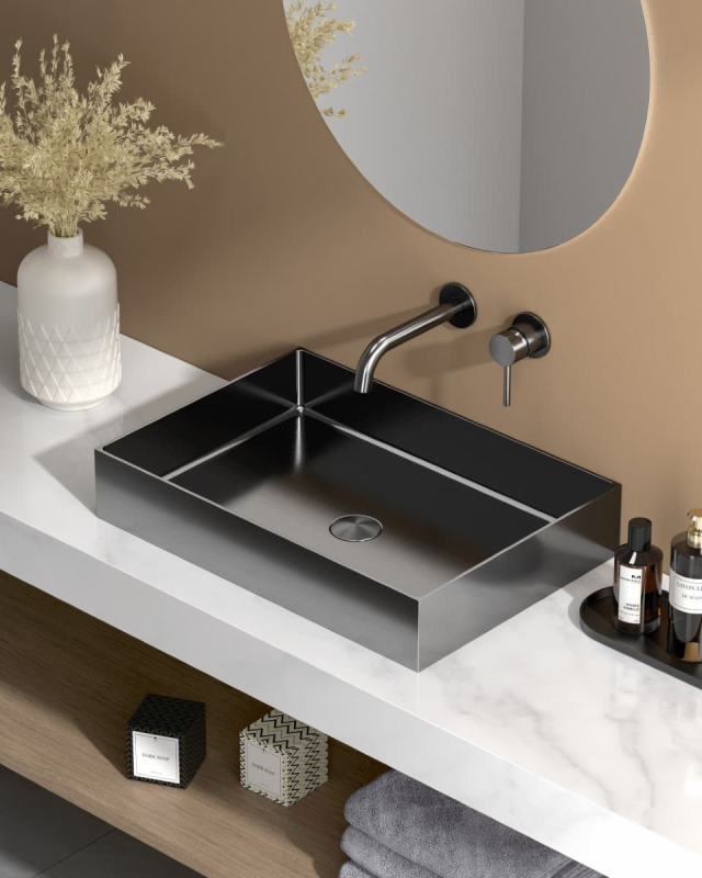 Umyvadlo na desku v barvě gun metal SAT Aurum 55x38 cm bez přepadu SATAUR5538BGM