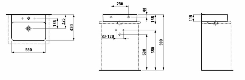 Umývadlo na dosku s otvorom pre batériu uprostred o šírke 55 cm, hĺbke 42 cm a výške 15,5 cm. Antibakteriálny povrch s jednoduchou údržbou. Balenie bez sifónu a batérie. Montážnu sadu je nutné dokúpiť.