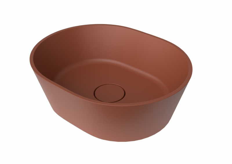 Umývadlo na dosku vo farebnom prevedení cooper brown bez otvoru pre batériu, bez prepadu od výrobcu SAT zo série Aula. Rozmery produktu sú 47x38x16,6 cm.