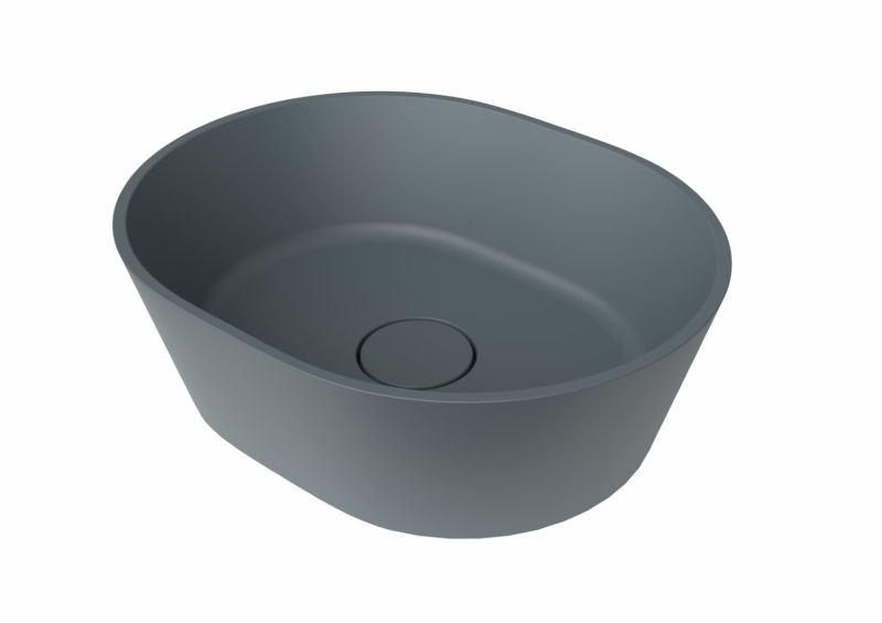 Umývadlo na dosku vo farebnom prevedení tmavo šedá bez otvoru pre batériu, bez prepadu od výrobcu SAT zo série Aula. Rozmery produktu sú 47x38x16,6 cm.