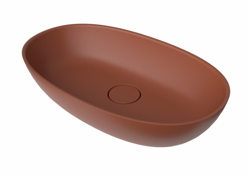 Umývadlo na dosku vo farebnom prevedení cooper brown bez otvoru pre batériu, bez prepadu od výrobcu SAT zo série Aula. Rozmery produktu sú 60x36x16 cm.