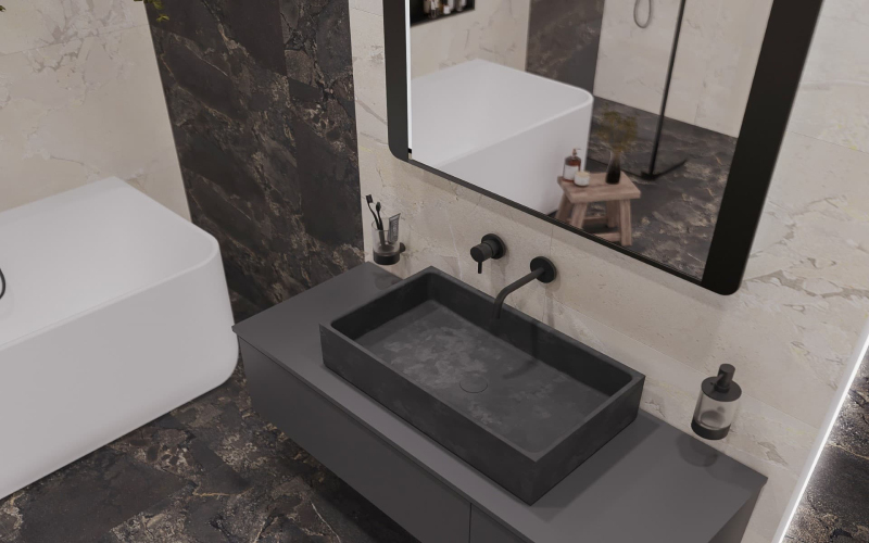 Správne umývadlo vdýchne život vašej kúpeľni a podčiarkne jej štýl, ako umývadlo zo série CEMENTO na dosku bez prepadu. Umývadlo disponuje šírkou 64 cm, hĺbkou 36,5 cm a výškou 14 cm. Antracitové farebné prevedenie a hranatý tvar. Materiál je pravý betón. Vtok nie je súčasťou dodania.