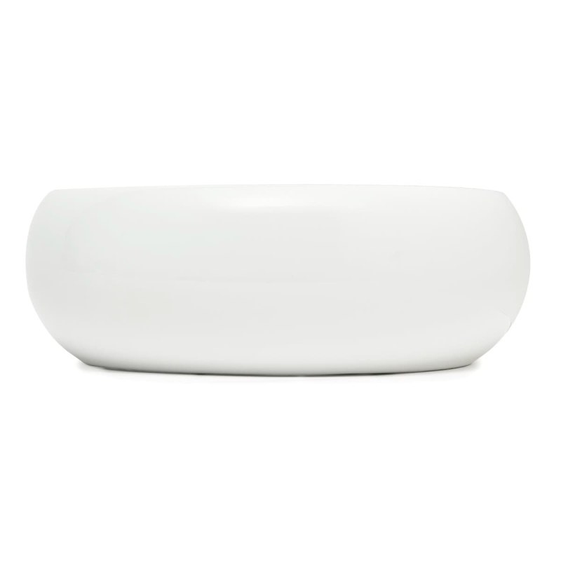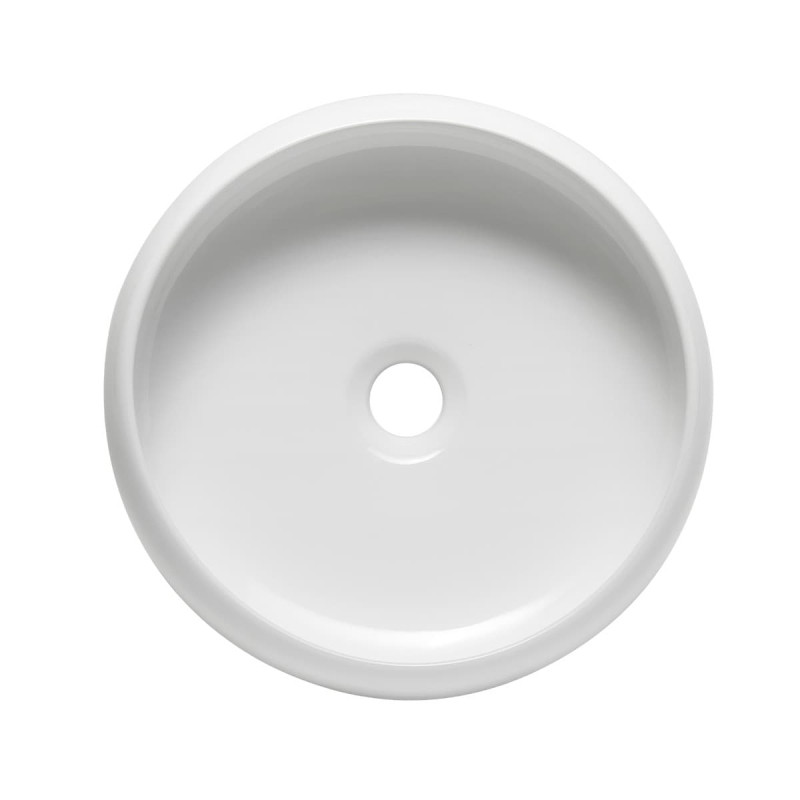 Okrúhle keramické umývadlo na dosku v bielej farbe s priemerom 36 cm a výškou 12 cm. Balenie bez batérie, vtoku a sifónu.