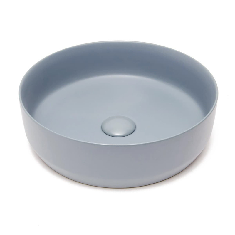 Umývadlo na dosku v tmavo modrom prevedení bez otvoru pre batériu, bez prepadu od výrobcu SAT zo série Infinitio. Rozmery produktu sú 39x39x12 cm.