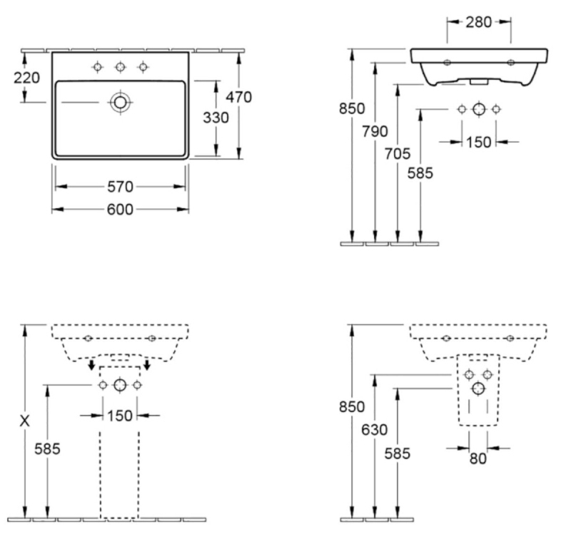 Umývadlo s otvorom pre batériu uprostred o šírke 60 cm, hĺbke 47 cm. Balenie bez sifónu a batérie.