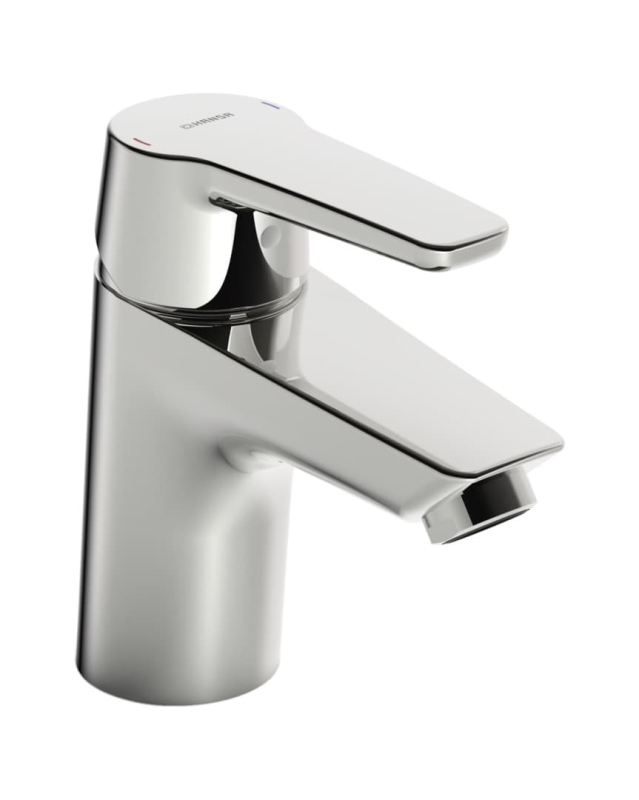 Páková stojanková umývadlová batéria bez výpustu. V chrómovom prevedení. Prietok batérie je 6 litrov/minútu. Výška batérie je 13,6 cm. Ramienko je vo výške 7 cm.