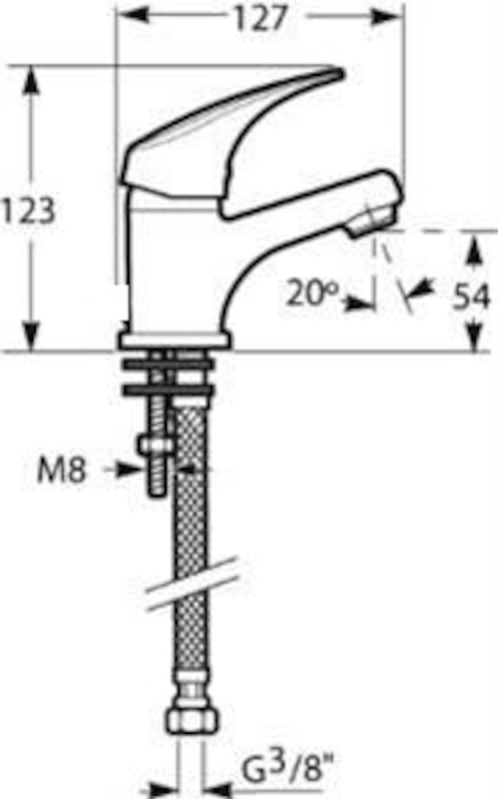 Páková stojanková umývadlová batéria bez výpustu. V chrómovom prevedení. Výška batérie je 12,3 cm. Ramienko je vo výške 5,4 cm.