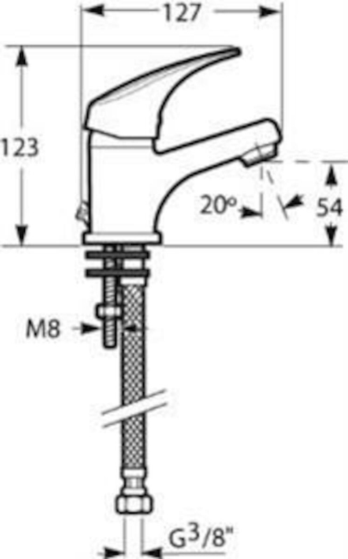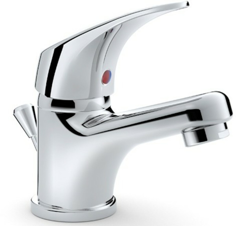 Páková stojanková umývadlová batéria s výpustou. V chrómovom prevedení. Výška batérie je 12,3 cm. Ramienko je vo výške 5,4 cm.