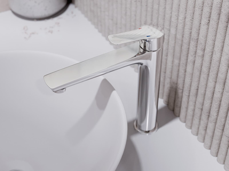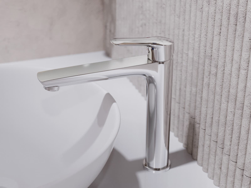 Páková stojanková umývadlová batéria s clic-clacom v chrómovom prevedení. Prietok batérie je 6 litrov/minútu. Výška batérie je 26,6 cm. Ramienko je vo výške 20,3 cm. Vo farebnom prevedení lesk.