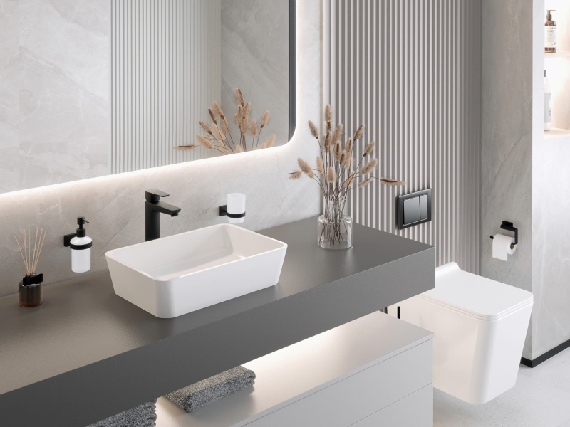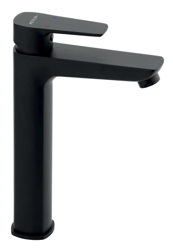 Páková stojanková umývadlová batéria bez výpustu. V čiernej farbe. S matným povrchom.