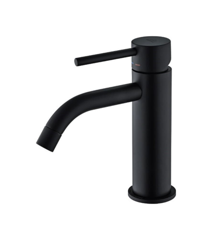 Páková stojanková umývadlová batéria s výpustou vo farebnom prevedení čierny mat. Prietok batérie je 8,9 litrov/minútu. S matným povrchom.