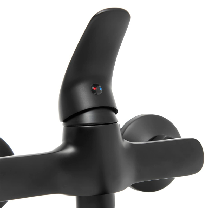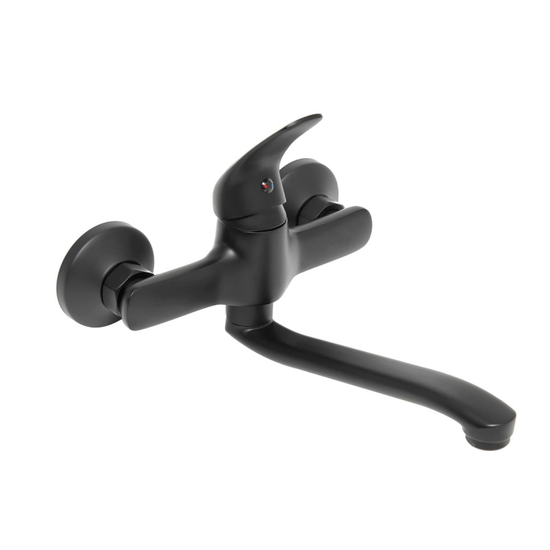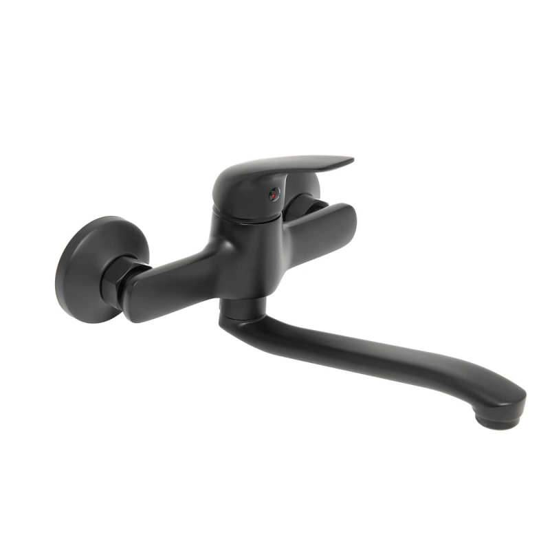 Páková nástenná umývadlová batéria s otočným ramienkom vo farbe čierna matná. S matným povrchom.