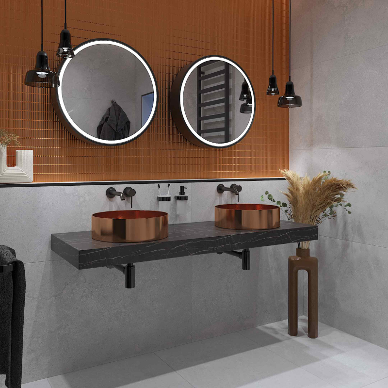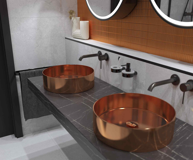 Páková podomietková umývadlová batéria vrátane podomietkového telesa. V okrúhlom dizajne vo farebnom prevedení brúsený gun metal. S matným povrchom