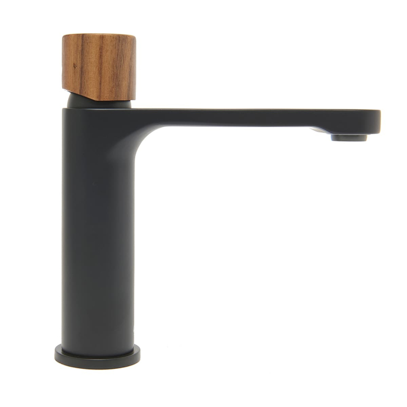 Páková stojanková umývadlová batéria bez výpuste Páka tmavé drevo. Prietok batérie je 4,5 litrov/minútu. Výška batérie je 16 cm. Ramienko je vo výške 11,8 cm. S matným povrchom.