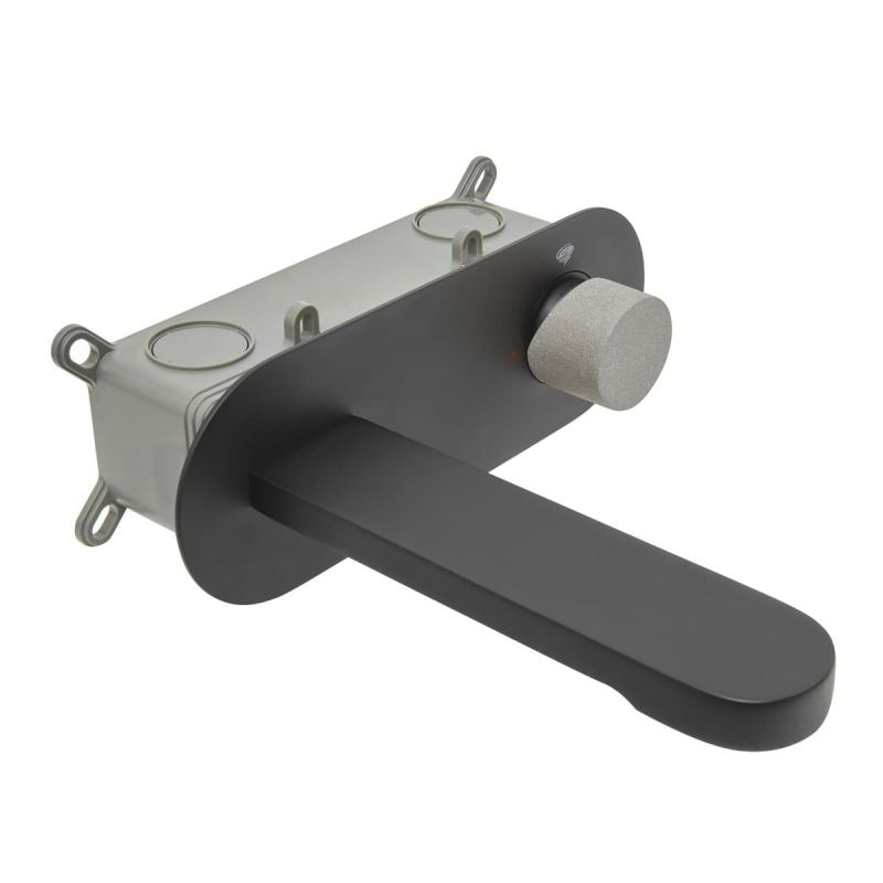 Páková podomietková umývadlová batéria vrátane podomietkového telesa. Páka betón. Prietok batérie je 4,5 litrov/minútu. S matným povrchom.