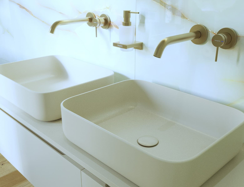 Páková podomítková umyvadlová baterie bez podomítkového tělesa v barevném provedení kartáčovaný bronz. Průtok baterie je 4 litrů/minutu. S matným povrchem.