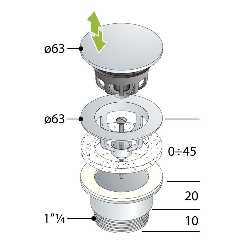 Umývadlová výpusť 5/4“, click-clack, veľká zátka, 10-45mm, biela mat 7532.310.5XD 58943
