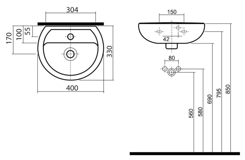 Umývátko Kolo Rekord 40x33 cm otvor pro baterii uprostřed K92140000