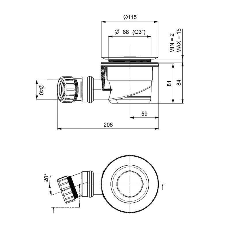 Vaničkový sifón, priemer 90mm, DN40, odtok v medzikruži, krytka biela 59141