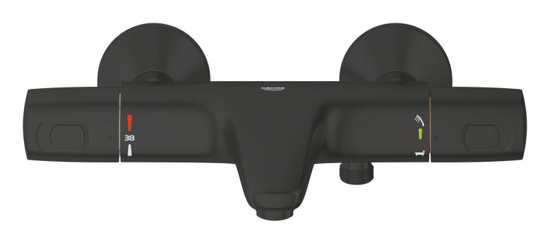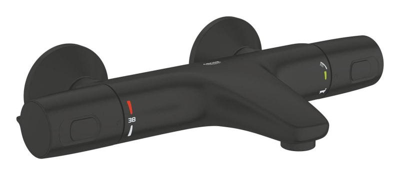 Termostatická nástenná vaňová batéria bez sprchového setu vo farbe čierna matná. Prietok batérie je 20 litrov/minútu. Rozteč batérie 150 mm. S matným povrchom.