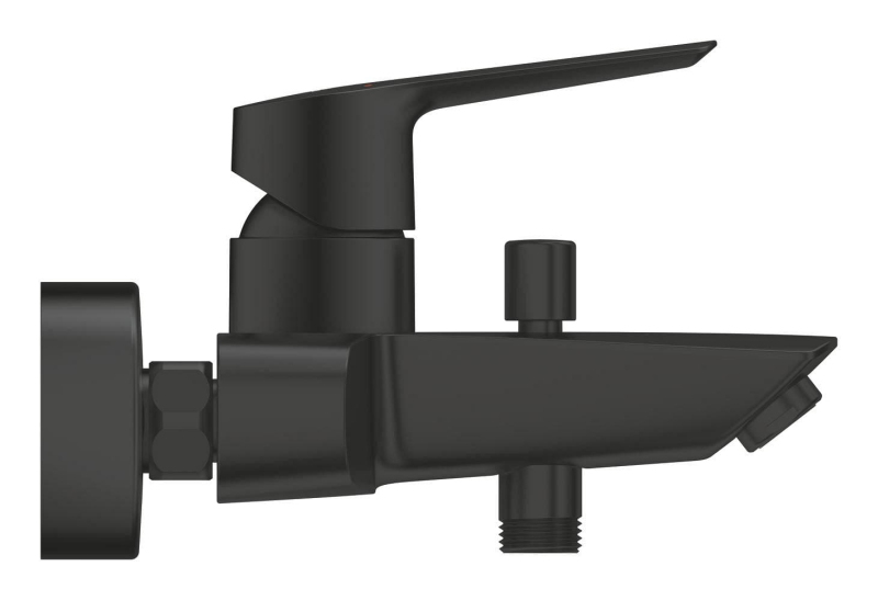 Páková nástenná vaňová batéria bez sprchového setu vo farbe čierna matná. Rozteč batérie 150 mm. S matným povrchom.