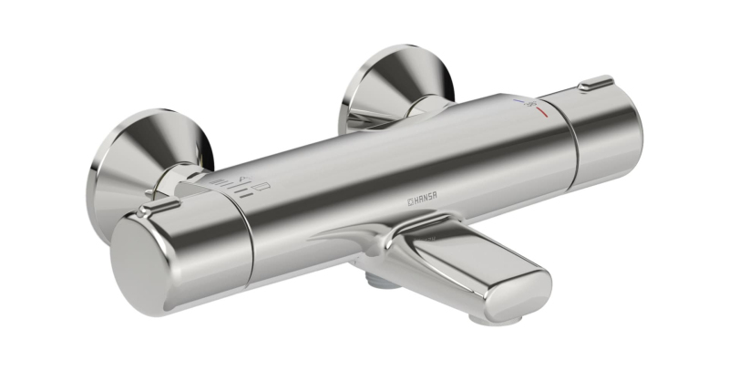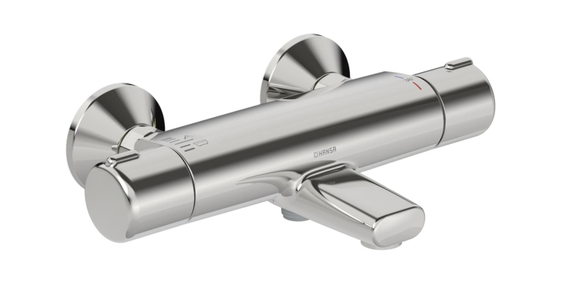 Termostatická nástenná vaňová batéria bez sprchového setu. V chrómovom prevedení. Prietok batérie je 20,4 litrov/minútu. Rozteč batérie 150 mm.