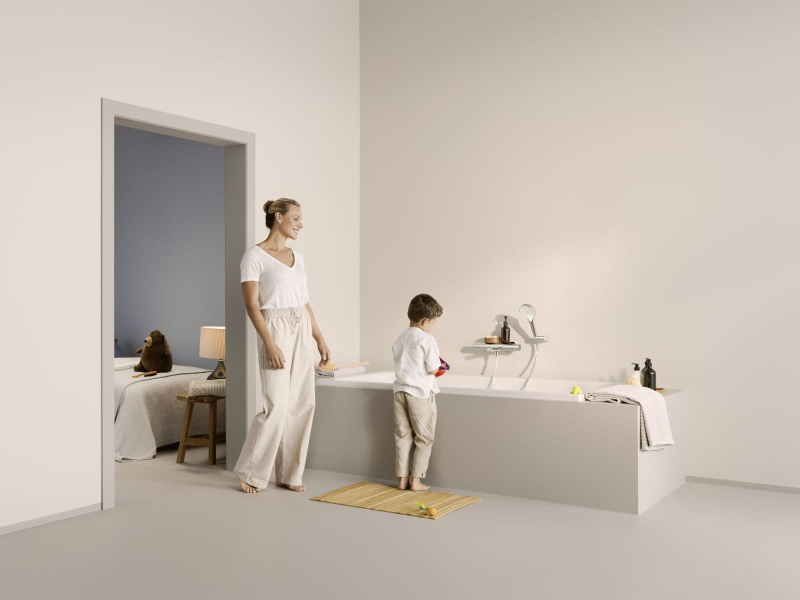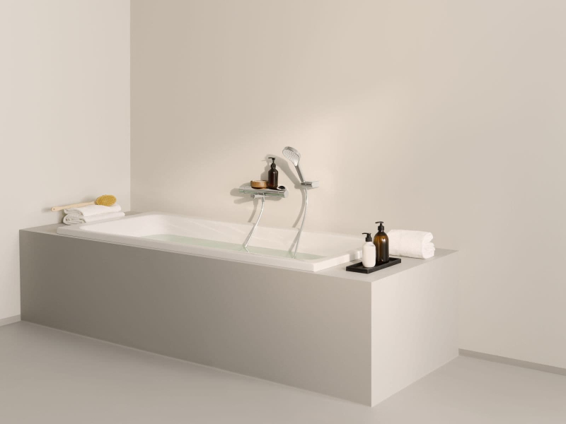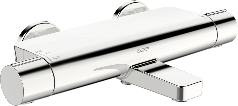 Termostatická nástenná vaňová batéria bez sprchového setu v chrómovom prevedení. Rozteč batérie 150 mm. Vo farebnom prevedení lesk.