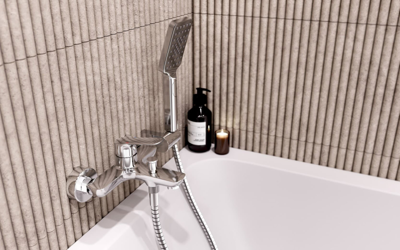 Páková nástenná vaňová batéria bez sprchového setu v chrómovom prevedení. Prietok batérie je 8 litrov/minútu. Rozteč batérie 150 mm. Vo farebnom prevedení lesk.