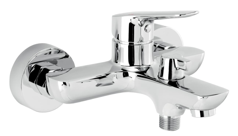 Páková nástenná vaňová batéria bez sprchového setu v chrómovom prevedení. Rozteč batérie 150 mm. Vo farebnom prevedení lesk.