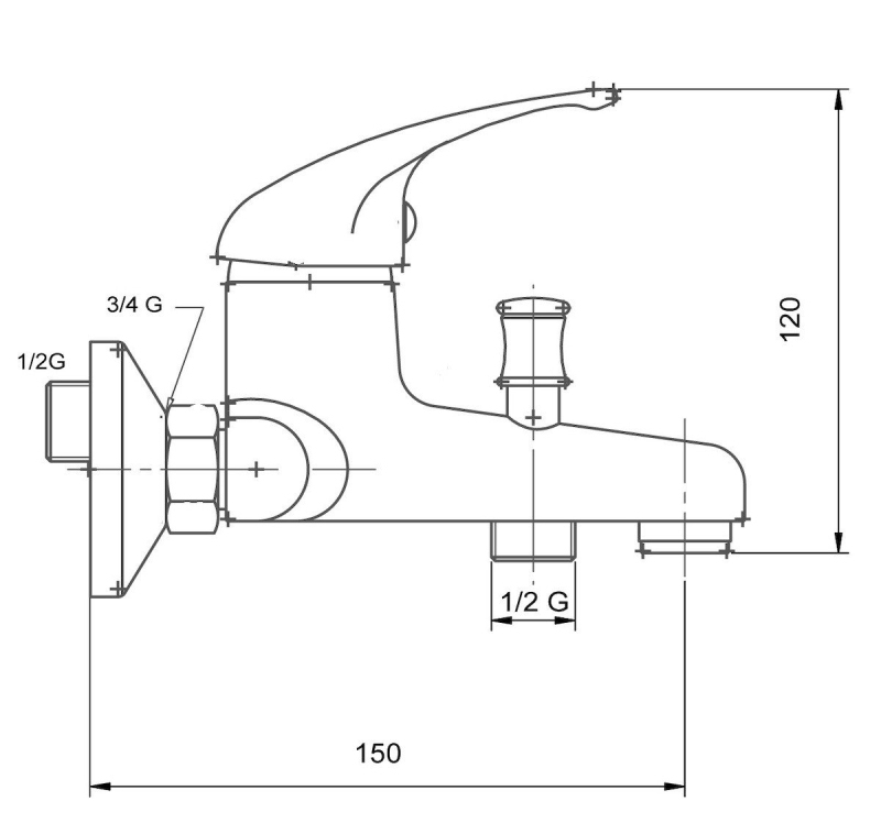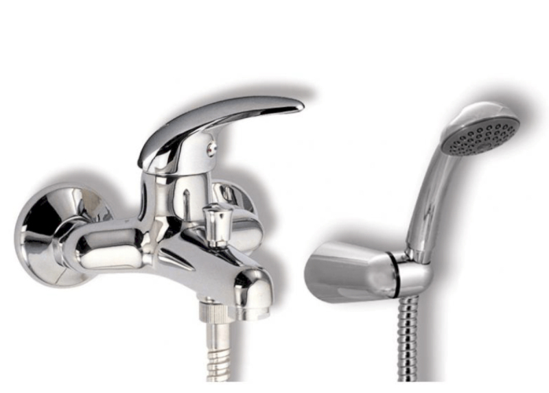 Páková nástenná vaňová batéria so sprchovacím setom. V oblom dizajne. V chrómovom prevedení. Rozteč batérie 100 mm.