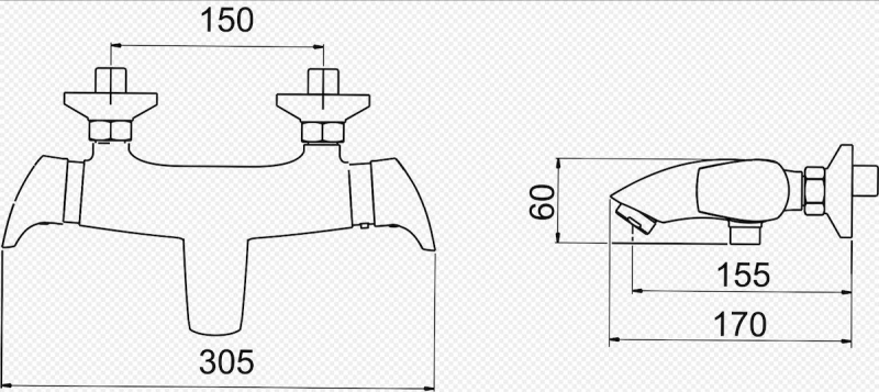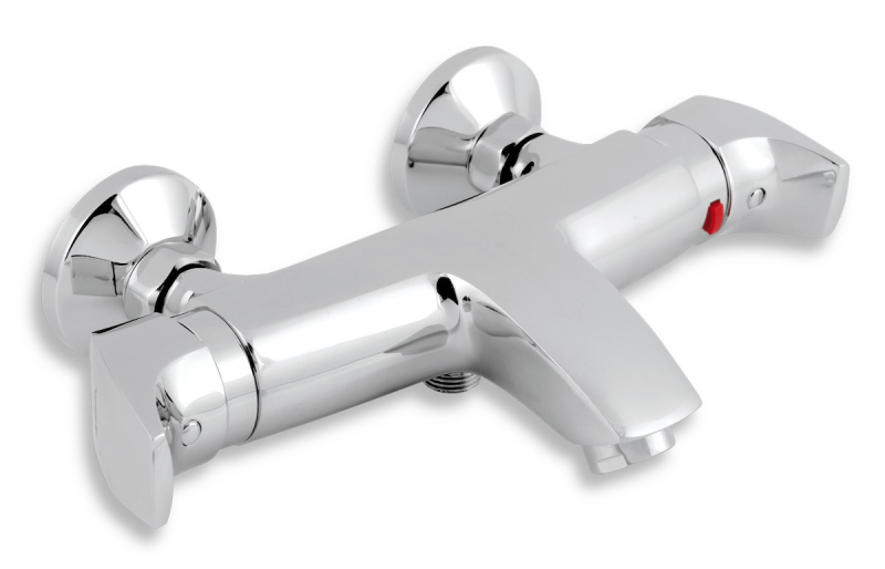 Termostatická nástenná vaňová batéria bez sprchového setu. V chrómovom prevedení. Rozteč batérie 150 mm.