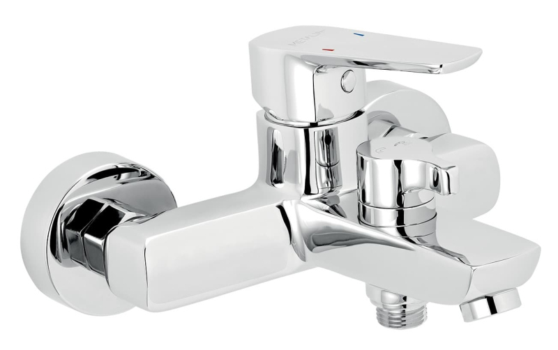 Páková nástenná vaňová batéria bez sprchového setu. V chrómovom prevedení. Rozteč batérie 150 mm.