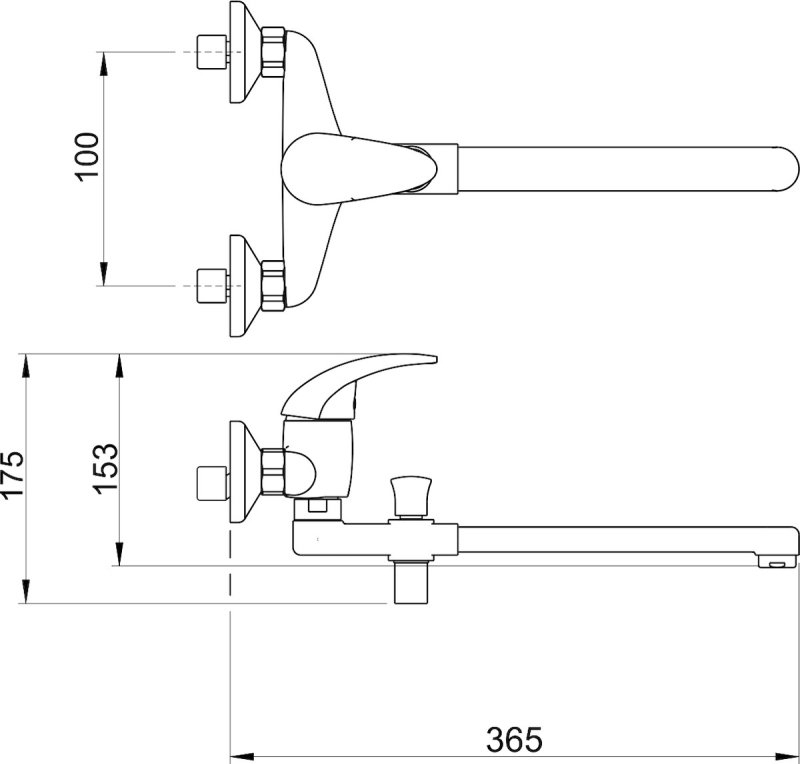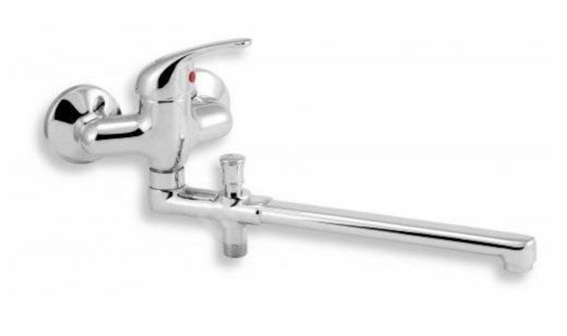 Páková nástenná vaňová batéria bez sprchového setu. V oblom dizajne. V chrómovom prevedení. Rozteč batérie 100 mm.