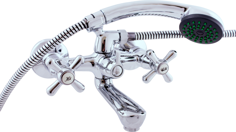 Kohútiková nástenná VANOVÁ BATÉRIA so sprchovacím setom. V chrómovom prevedení. Rozteč batérie 100 mm.