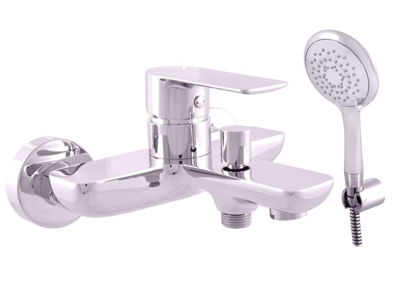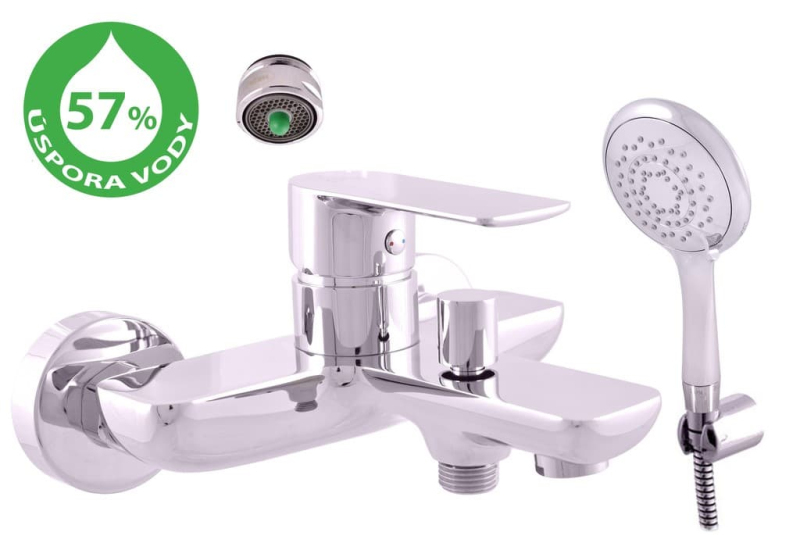 Páková nástenná vaňová batéria so sprchovacím setom v chrómovom prevedení. Rozteč batérie 150 mm. vo farebnom prevedení lesk.