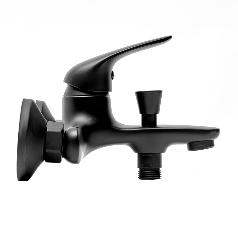 Páková nástenná vaňová batéria bez sprchového setu. V čiernej farbe. Rozteč batérie 150 mm. S matným povrchom.