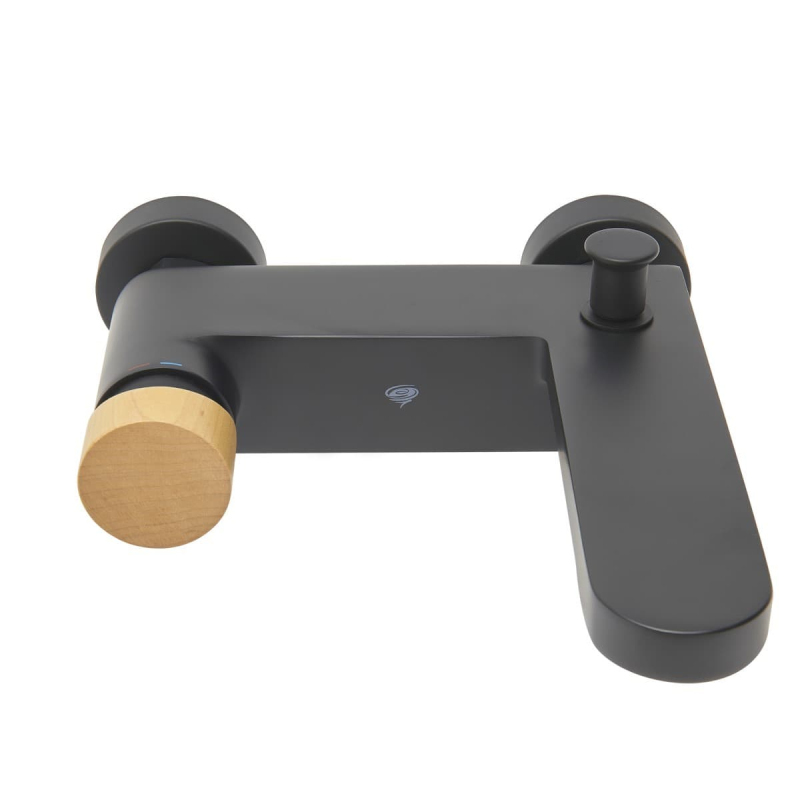 Páková nástenná vaňová batéria bez sprchového setu Páka svetlé drevo. Rozteč batérie 150 mm. S matným povrchom.