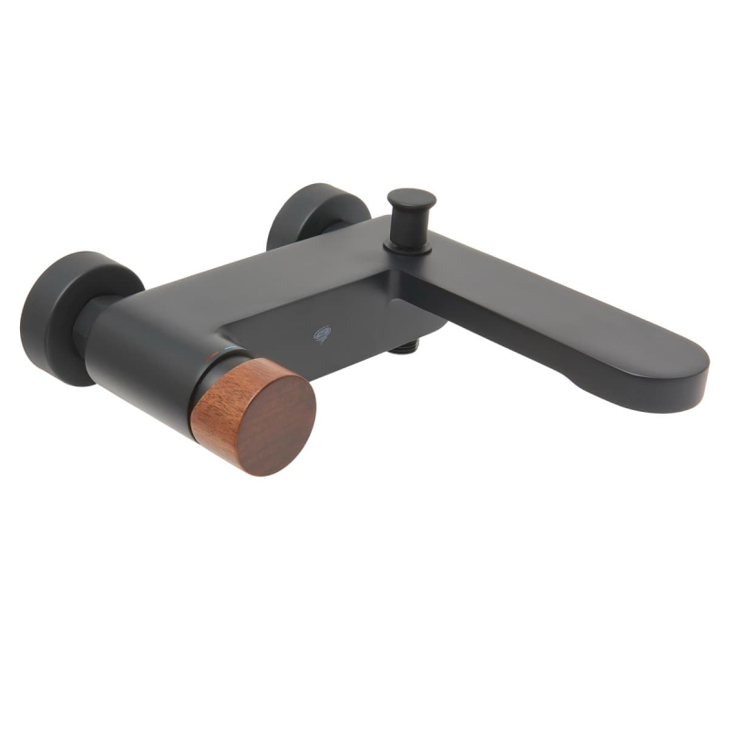 Páková nástenná vaňová batéria bez sprchového setu Páka tmavé drevo Rozteč batérie 150 mm. S matným povrchom.