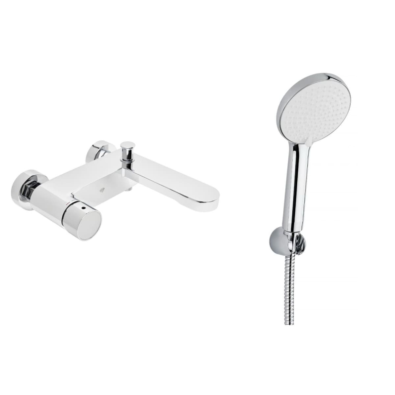 Páková nástenná vaňová batéria s vaňovým setom v chrómovom prevedení. Rozteč batérie 150 mm. Vo farebnom prevedení lesk.