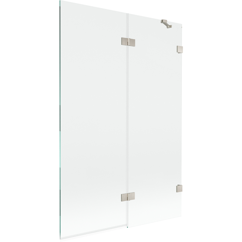 Špecifikácia produktu: Šírka: 120 cm Výška: 150 cm Typ: 2krídlové Strana montáže: Pravá Typ: Pohyblivé/Výklopné Typ skla: Tvrdené Farba skla: Priehľadná Hrúbka skla: 8 mm Povrchová úprava: Kartáčovaný nikel Povlak pre ľahké čistenie Nastaviteľná sklom Elastomérové tesnenia pre odvod vody Dva montážne systémy: - s profilom, ktorý umožňuje vyrovnanie nerovností steny - bez profilu pre dokonale rovné steny
