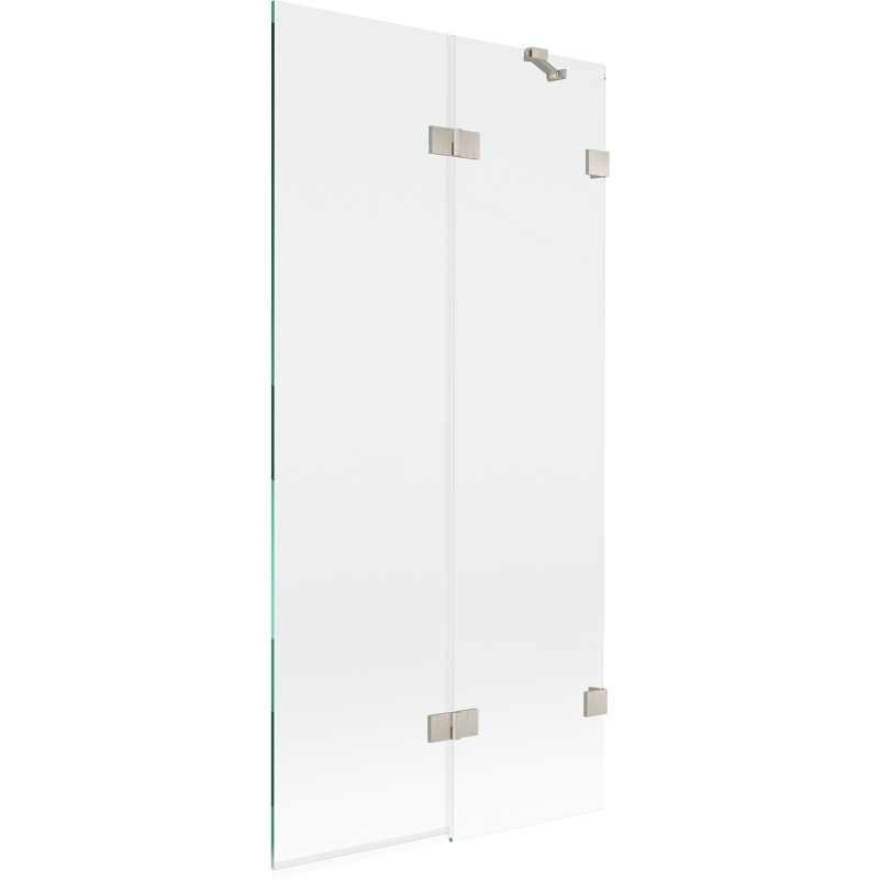 Špecifikácia produktu: Šírka: 90 cm Výška: 150 cm Typ: 2krídlové Strana montáže: Pravá Typ: Pohyblivé/Výklopné Typ skla: Tvrdené Farba skla: Priehľadná Hrúbka skla: 8 mm Povrchová úprava: Kartáčovaný nikel Povlak pre ľahké čistenie Nastaviteľná šírka Elastomérové tesnenia pre odvod vody Dva montážne systémy: - s profilom, ktorý umožňuje vyrovnanie nerovností steny - bez profilu pre dokonale rovné steny