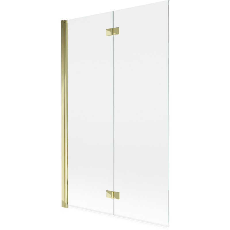 Špecifikácia produktu: Šírka: 110 cm Výška: 150 cm Typ: 2krídlové Strana montáže: Ľavá Typ: Pohyblivé/Skladacie Typ skla: Tvrdené Farba skla: Priehľadná Hrúbka skla: 6 mm Povrchová úprava: Zlatý povlak pre ľahké čistenie Nastaviteľná šírka mosaz na odvod vody