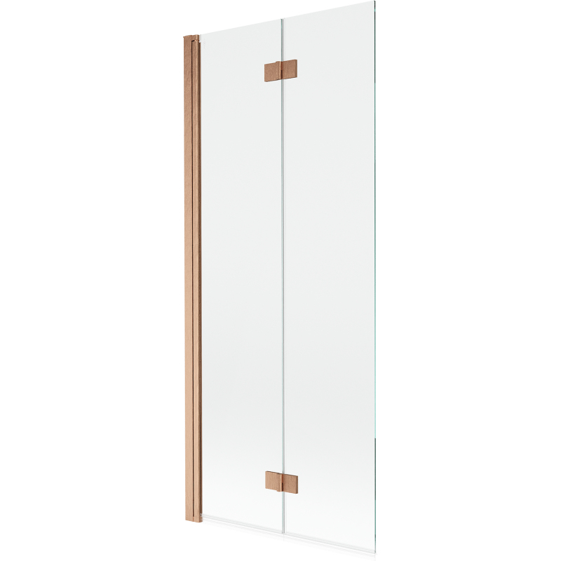 Špecifikácia produktu: Šírka: 80 cm Výška: 150 cm Typ: 2krídlové Strana montáže: Ľavá Typ: Pohyblivé/Skladacie Typ skla: Tvrdené Farba skla: Priehľadná Hrúbka skla: 6 mm Povrchová úprava: Kartáčovaná meď Ľahko čistiteľný povlak Nastaviteľná šírka Elastomérové tesnenia na odvod vody