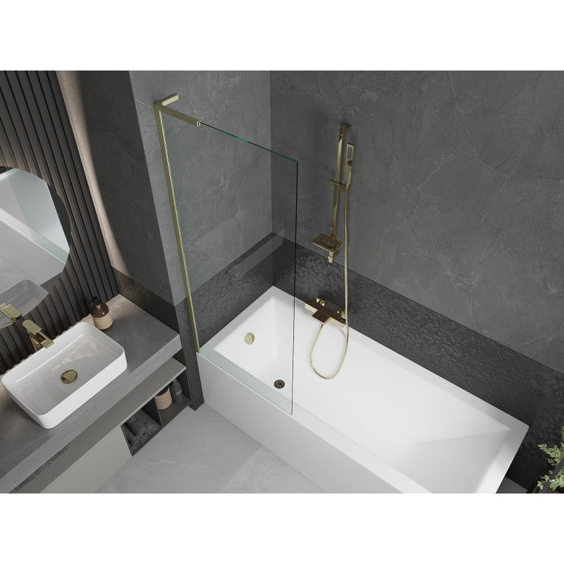 Vanová zástěna Mexen Next L s jedním křídlem 70 x 150 cm, průhledná, kartáčované zlato - 895-070-000-03-00-55