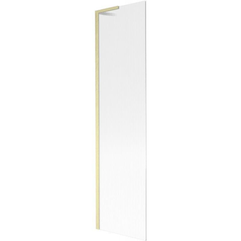 Technické údaje: Šírka: 50 cm Výška: 150 cm Typ: 1-krídlové Montáž: Univerzálny Typ: Pevné Typ skla: Tvrdené Farba skla: Pruhy Hrúbka skla: 6 mm Povrchová úprava: Kartáčované zlato Uhlový stabilizátor L: Nerezová oceľ Povlak na ľahké čistenie