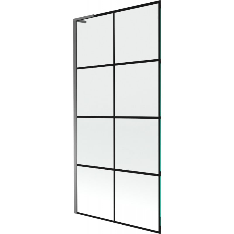 Technické údaje: Šírka: 90 cm Výška: 150 cm Typ: 1-krídlové Montáž: Univerzálny Typ: Pevné Typ skla: Tvrdené Farba skla: Čierna mriežka Hrúbka skla: 6 mm Povrchová úprava: Strieborná oceľ Uhlový stabilizátor L: Nerezová oceľ Povrch