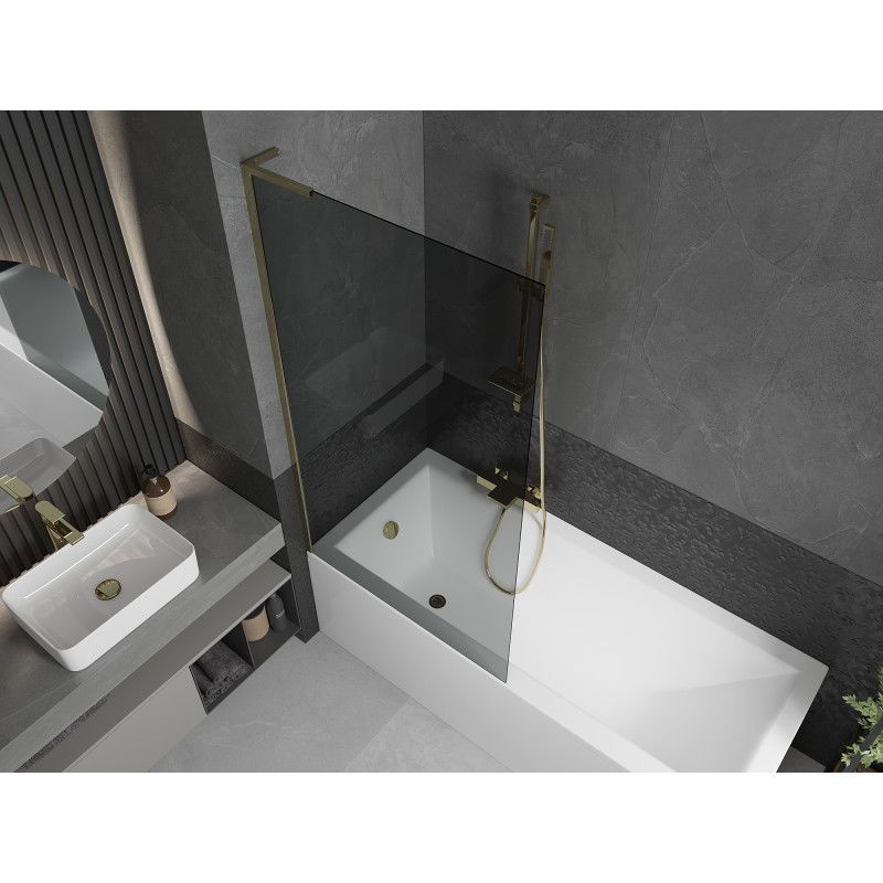 Vaňová zástena Mexen Next L s jedným krídlom 90 x 150 cm, grafitová, zlatá - 895-090-000-03-40-50
