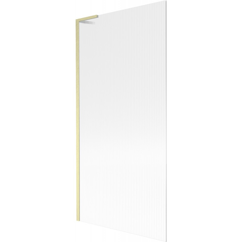Technické údaje: Šírka: 90 cm Výška: 150 cm Typ: 1-krídlové Montáž: Univerzálny Typ: Pevné Typ skla: Tvrdené Farba skla: Pruhy Hrúbka skla: 6 mm Povrchová úprava: Kartáčované zlato Uhlový stabilizátor L: Nerezová oceľ Povrchová úprava pre ľahké